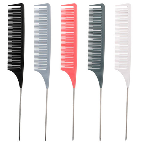 Siyah mor isıya dayanıklı Salon boya Metal ucu karbon Fiber sıçan kuyruk saç ayrılık tarak